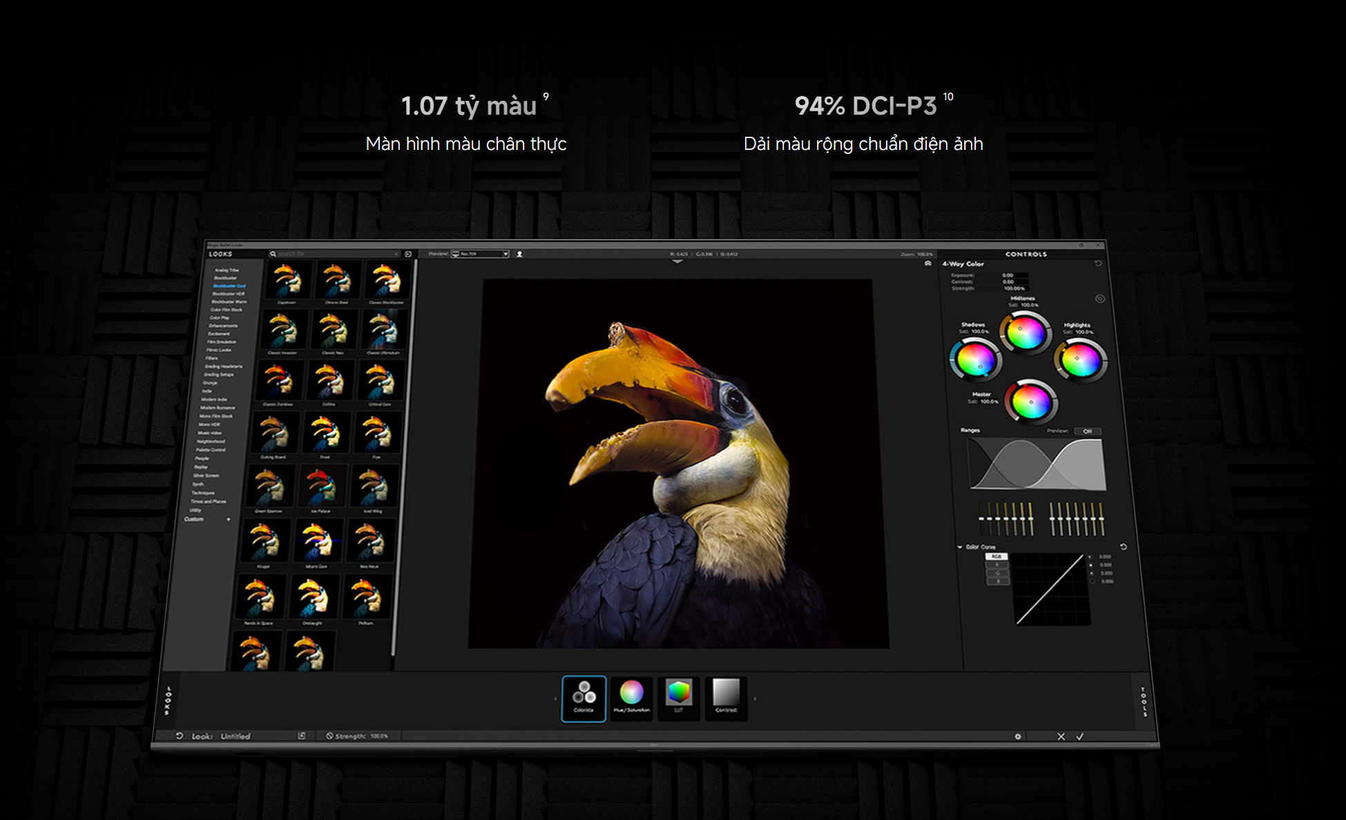 Dải màu DCI P3 đạt 94 phần trăm giúp tái tạo màu sắc chuẩn điện ảnh. Góc nhìn rộng 178 độ ngang và dọc đảm bảo hình ảnh rõ nét từ nhiều vị trí khác nhau trong phòng.