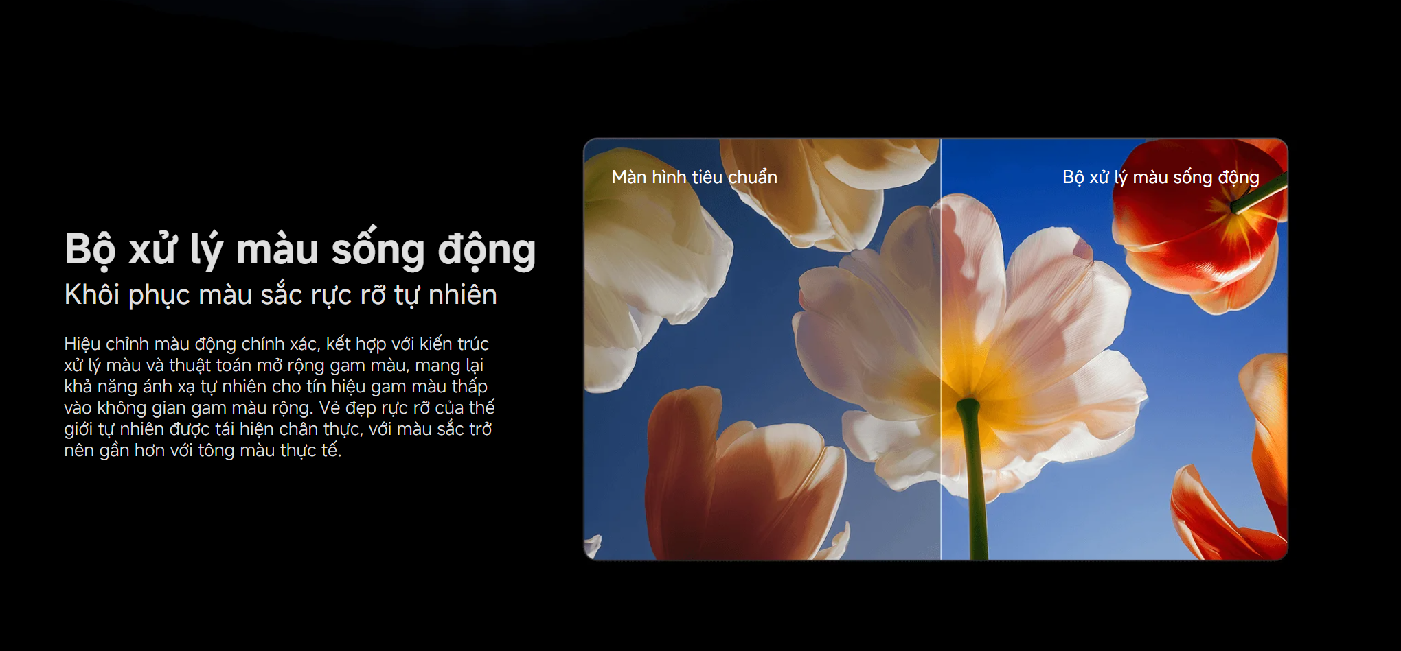 Xiaomi TV S Mini LED 75 được trang bị công nghệ QD Mini LED với 512 đèn nền độc lập, cho khả năng kiểm soát ánh sáng chính xác và tăng cường độ tương phản. Nhờ đó, hình ảnh hiển thị có chiều sâu rõ rệt, vùng sáng nổi bật và vùng tối sâu hơn, hạn chế tình trạng hở sáng.