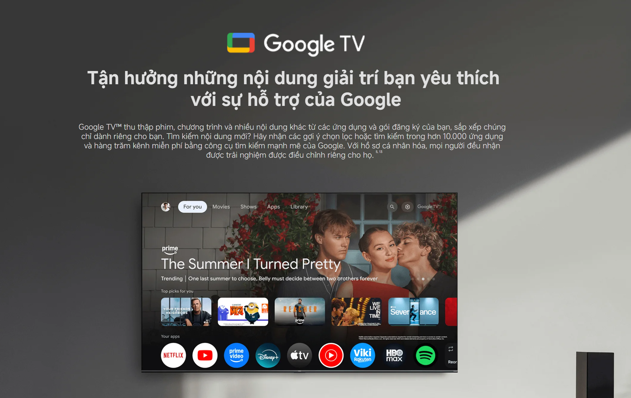 | Ứng dụng phổ biến | Netflix, Prime Video và YouTube được cài đặt sẵn |