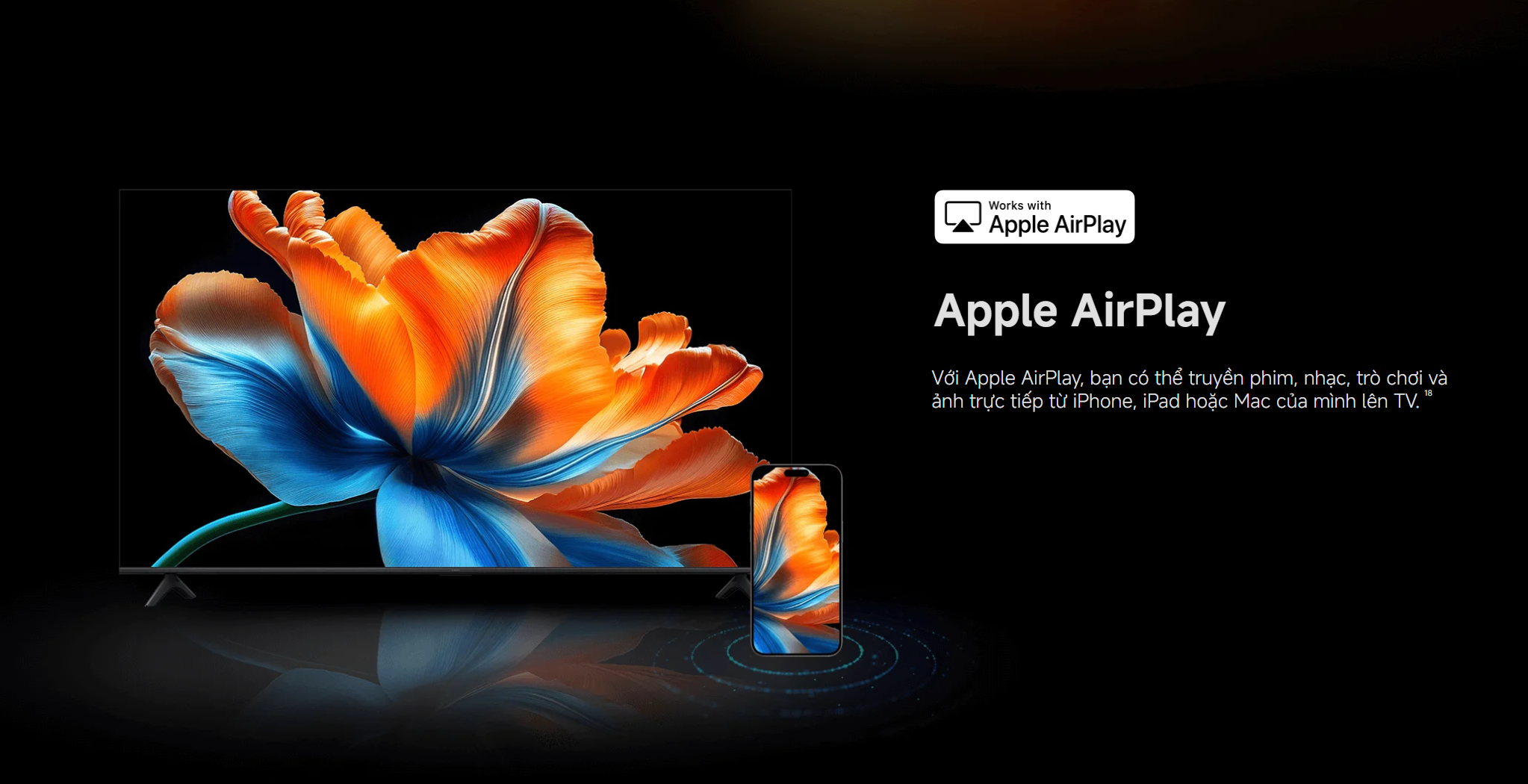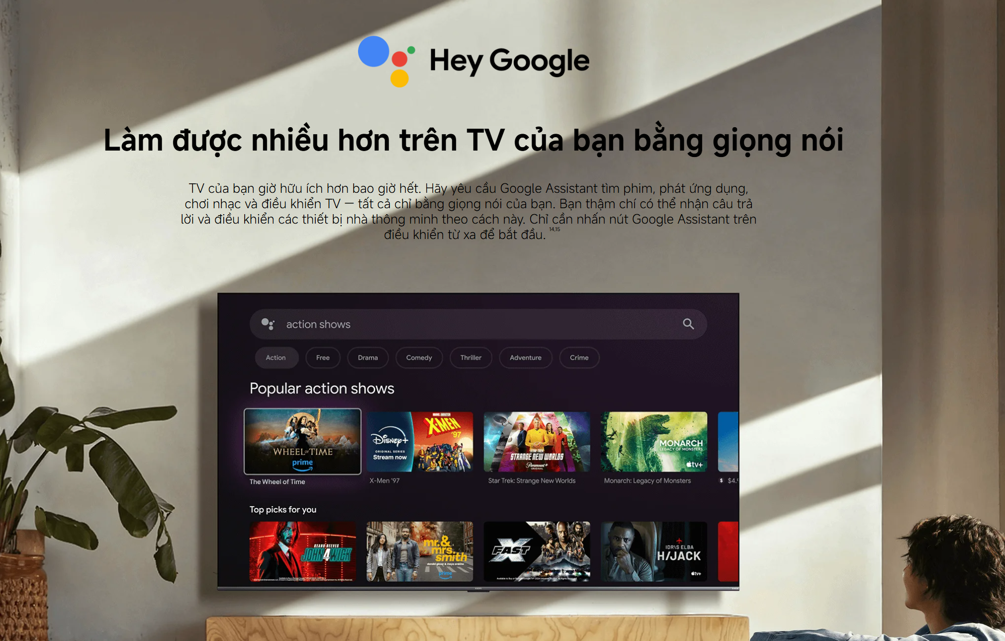 TV tích hợp Google Assistant hỗ trợ điều khiển bằng giọng nói, tương thích Google Cast và Apple AirPlay, giúp chia sẻ nội dung từ điện thoại, máy tính bảng lên màn hình lớn nhanh chóng. Chế độ Filmmaker Mode mang đến trải nghiệm xem phim đúng với ý đồ của nhà làm phim.