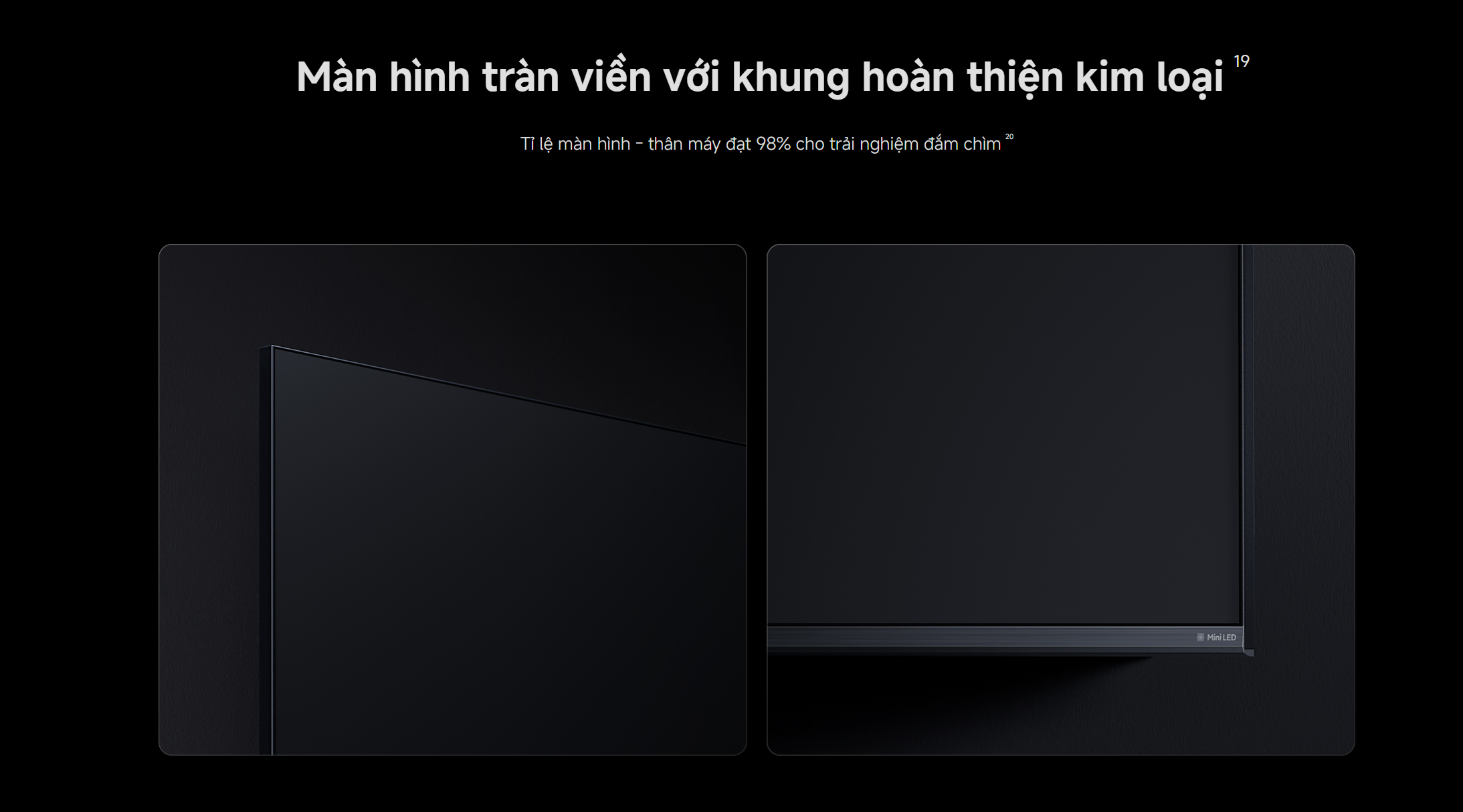 | Thiết kế | Viền mỏng cao cấp, chân đế đôi |